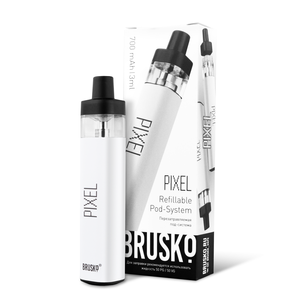 Перезаправляемая Под-Система Бруско Пиксель (Brusko Pixel) 700 mah, Белый - купить в Электростали
